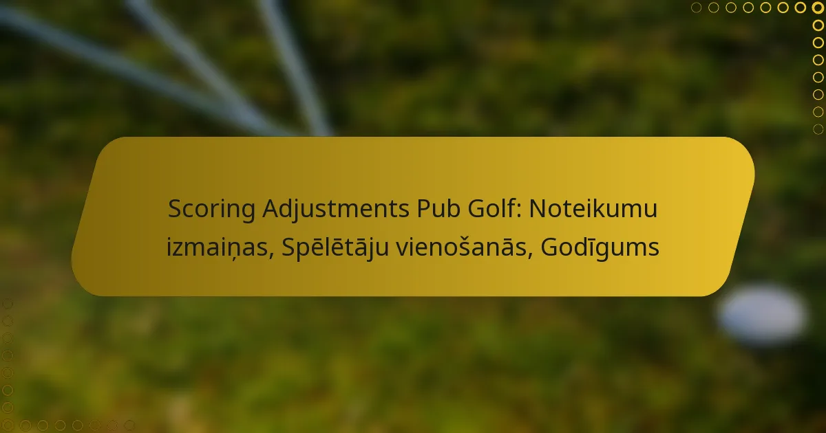 Vērtēšanas pielāgojumi pub golfā ir būtiskas izmaiņas standarta noteikumos, kas uzlabo spēles pieredzi un ņem vērā spēlētāju preferences. Mainot punktu sistēmu vai ieviešot īpašus noteikumus, spēlētāji var radīt patīkamāku atmosfēru, vienlaikus nodrošinot taisnīgumu, skaidri vienojoties par vērtēšanu. Šie nolīgumi palīdz visiem dalībniekiem saprast izmaiņas, veicinot draudzības un sacensību garu.