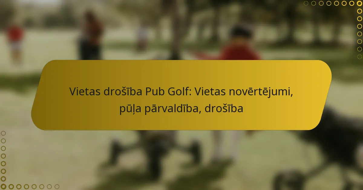 Vietu novērtējumi pub golf koncentrējas uz drošības un komforta nodrošināšanu dalībniekiem. Galvenie faktori ietver vietas plānojumu, ietilpības ierobežojumus, pieejamību, ārkārtas protokolus un vides apstākļus, kas var ietekmēt drošību.